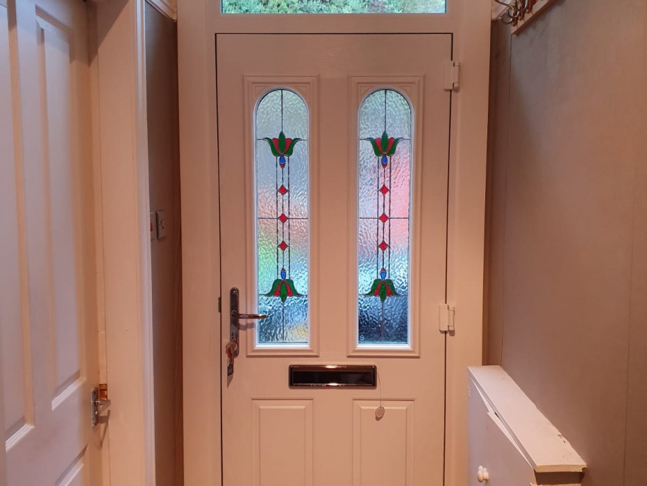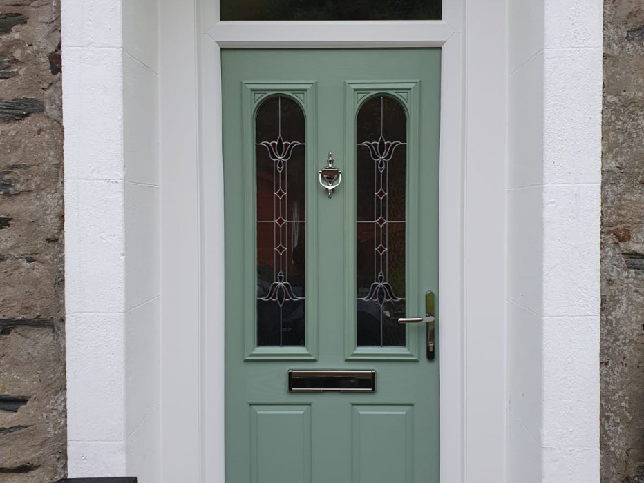 One of our new chartwell green composite doors with a fanlight
